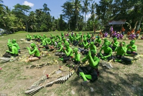 Khám phá lễ hội sơn xanh lên người để xua đuổi tà ma ở đảo Bali