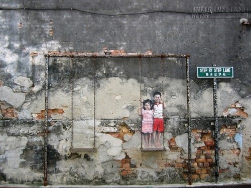 Không những thế, nơi đây còn rất nổi tiếng với khu nghệ thuật đường phố graffiti 3D. Những bức tranh tường graffiti 3D ở Penang nên thơ một cách Á Đông, tựa như gương mặt hồn nhiên của những đứa trẻ chở nhau trên xe đạp, bé gái đu mình lơ lửng trên chiếc xích đu khổng lồ…Những không gian 3D này vừa thực vừa ảo, nhân vật cứ như thể đang sống cùng bạn.