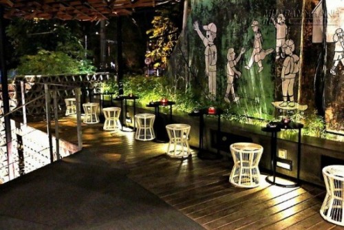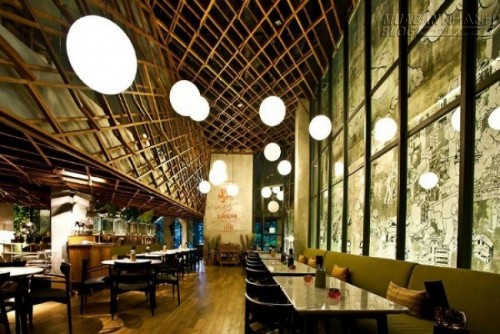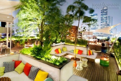 Thiết kế sử dụng gỗ và tông màu vàng, xanh rực rỡ