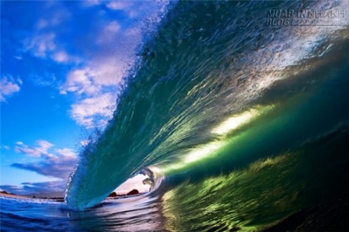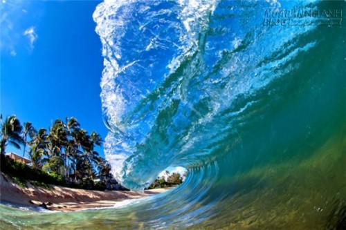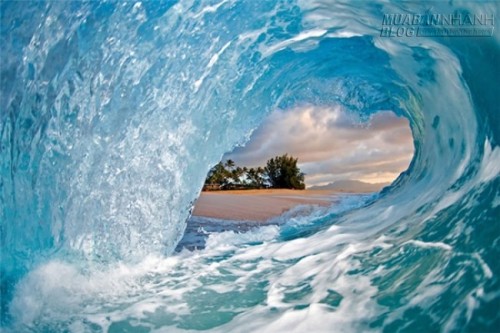 Từng lớp sóng màu xanh biếc được chụp lại rất nhanh trong một khoảnh khắc.