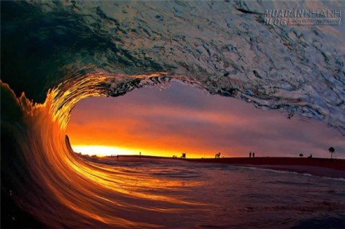 Hình ảnh sóng biển lúc mặt trời mọc tạo nên một cảnh tượng khá lạ mắt.