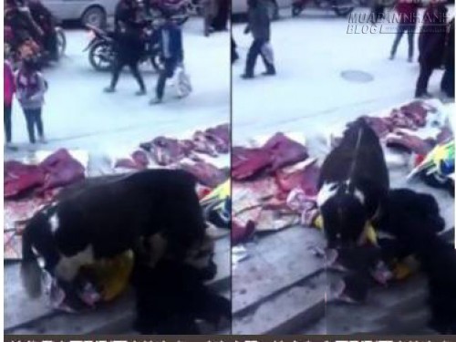 Đoạn video clip này được ghi hình tại một khu chợ buôn bán thịt gia súc tại Trung Quốc. Mặc dù chỉ kéo dài chưa tới 2 phút, nhưng đoạn phim ngắn do máy quay CCTV quay lại khiến không ít người cảm thấy bối rối và xửng sốt trước hành động của chú bò này.