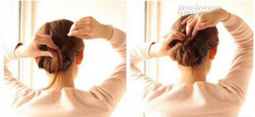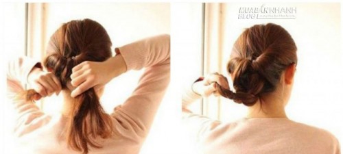 Sau đó tiếp tục xoắn phần tóc thừa vào bên trong rồi dùng cặp ghim ghim lại.