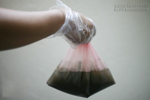 Do loại bột vi sinh này có màu nâu nên sau khi cho vào hòa tan với nước, toàn bộ màu nước trong túi nilon sẽ chuyển sang màu nâu. Quan sát một lúc, chúng tôi không phát hiện sự bất thường, khi đồng hồ chạy đến phút thứ 20 thì tiến hành vớt ra.