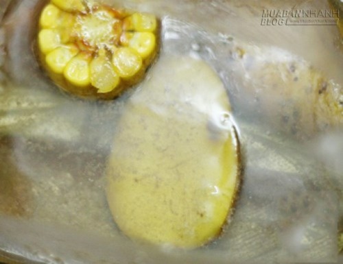 Sau 20 phút vớt ra, các miếng khoai tây và ngô ngọt gần như không có biểu hiện bị "luộc" chín.