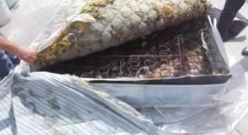 Những hình ảnh đáng sợ này diễn ra trong một gia đình tại Mexico. Khi mọi người đang vui mừng vì mua được chiếc đệm mới, đã có một vết rách nhỏ xảy ra dẫn đến việc tìm kiếm nguyên nhân phát hiện đáng sợ trên.