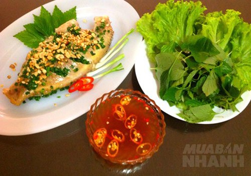Rau sống các loại nhặt rồi rửa sạch, để ráo nước. Pha chén nước mắm ớt chua ngọt hoặc nước mắm gừng ớt. Cá điêu hồng chín cho ra đĩa, thoa một lớt mỡ hành lên trên cùng ít đậu phụng rang.