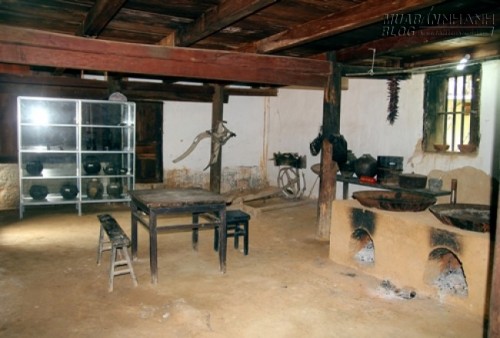 Tôi quay xe để đi xuống một con dốc nhỏ theo sự hướng dẫn của cô sơn nữ. Trên đường vào, những ngôi nhà lụp sụp hai bên đường khác hẳn với vẻ tráng lệ của biệt thự Nhà Vương. Đi qua một khu chợ, vài chủ quán đon đả chào mời khách mua quà lưu niệm và những tảng mật ong đá "đặc sản" của Hà Giang. Phải đến khi bước lên từng bậc thang, vào sát cổng chính chúng tôi mới dám chắc, mình đã lạc bước vào ngôi nhà đẹp nhất cao nguyên đá Đồng Văn.