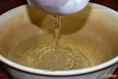 5.Nhấc miếng vải lên, cho nước chảy vào bát