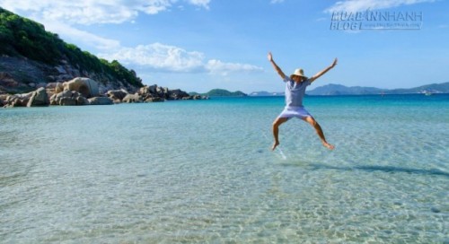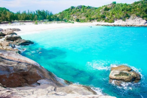 Nước biển xanh ngắt tại bãi cây Me. Ảnh: golux