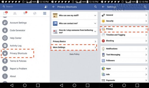 Mở Facebook, vào phần thiết lập cá nhân và chọn vào “Privacy Shortcuts” (Đường tắt Quyền Riêng Tư) > More Setting (Cài đặt khác) > Privacy (Quyền Riêng Tư).