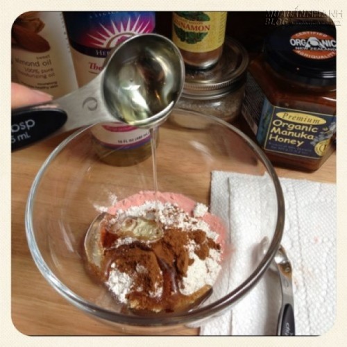 – 1 thìa cà phê mật ong nguyên chất: mật ong giúp tăng dường giữ ẩm cho da, lại làm dịu các vết thương, mụn trên da, tăng cường tái tạo tế bào da.