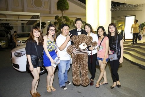 Sau giờ diễn, Dương Triệu Vũ hạnh phúc khi thấy nhiều fans đứng đợi để tặng quà, xin chữ ký và chụp hình chung.