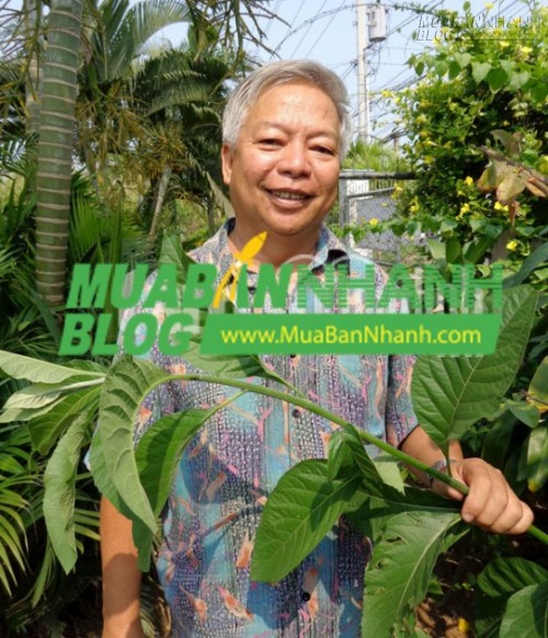Kể đến đó, ông Tám Khai dẫn chúng tôi ra góc vườn xem cây thuốc lạ đã giúp ông hết bệnh tiểu đường và các căn bệnh hiểm nghèo khác. Đó là một bụi cây có thân khá mềm, cao khoảng gần 2m. Thân cây và lá đều có màu xanh lục đậm. Lá khá to mọc xen kẽ với nhau, có hình dạng giống như lá cây hoa ngọc lan, vò nát trong tay không ngửi thấy mùi gì đặc trưng.