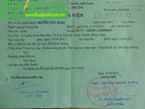 Giấy ra viện của Bệnh viện Chợ Rẫy cấp cho ông Tám Khai với nhiều loại bệnh