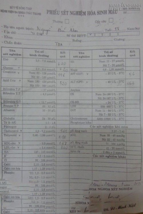 Kết quả xét nghiệm máu của ông Tám Khai chứng tỏ bệnh tình đã thuyên giảm nhiều