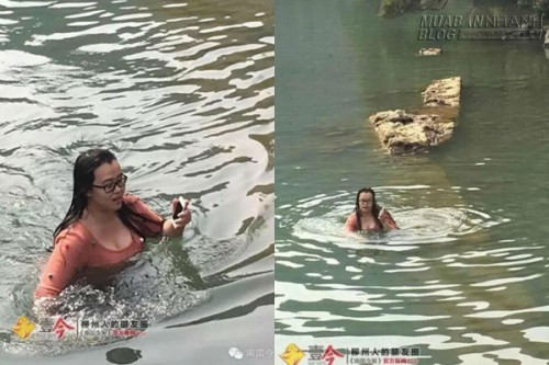 Theo lời một người qua đường tên Deng chứng kiến vụ việc này, anh đang đi dọc con sông thì nghe thấy một âm thanh như có người vừa nhảy xuống sông.Deng nghĩ rằng ai đó đang gặp nạn nên liền chạy về phía phát ra âm thanh đó. Đến nơi, anh thấy một người phụ nữ đang ngụp lặn cách bờ khoảng 4 đến 5 mét.