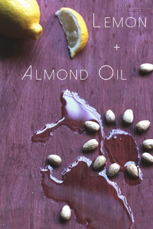 Sử dụng 1 hoặc 1/2 quả chanh sau đó cho từ 2-3 giọt tinh dầu hạnh nhân và khuấy đều, sử dụng bông tăm chấm hỗn hợp và bôi lên vùng da quanh mắt sẽ giúp bạn loại bỏ tình trạng quầng thâm, tinh chất chanh sẽ làm sáng vùng da tối màu còn tinh dầu hạnh nhân sẽ cung cấp độ ẩm và làm mềm da.