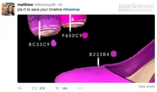 Theo đó, hình ảnh vừa được đưa lên có nội dung là một đôi giày màu hồng - tím và hai lọ sơn móng tay. Từ hình ảnh, rõ ràng có một lọ có màu tím đậm hơn so với lọ còn lại. Tuy nhiên, dù rõ ràng hai lọ sơn móng tay có màu hoàn toàn khác nhau, nhưng nếu nhìn riêng từng lọ sơn móng tay và so sánh màu đó với đôi giày, bạn sẽ thấy màu bạn vừa nhìn… hoàn toàn giống màu của đôi giày.