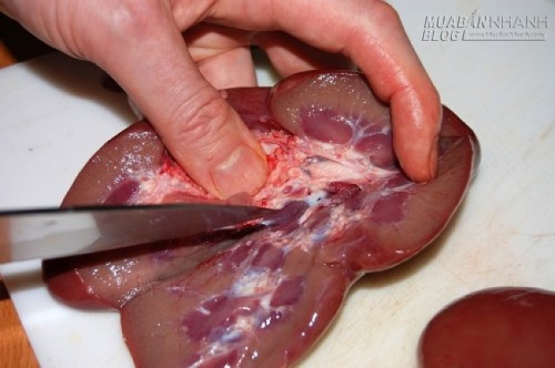 Cắt quả cật làm đôi theo chiều dọc, dùng dao thái thịt lạng bỏ phần mỡ bên trong cho thật sạch để cật không bị hôi. Rửa sạch cật heo bằng chút nước lạnh pha muối, sau đó cho quả cật đã rửa sạch vào thau nước lạnh có pha chút muối và gừng để tạo độ giòn và khử mùi hiệu quả (bạn có thể thay rượu và gừng bằng dấm nhé), ngâm khoảng 10 phút rồi vớt ra để ráo nước. Lúc này bạn có thể để nguyên quả cật để luộc hay thái lát mỏng vừa ăn để xào, nấu.