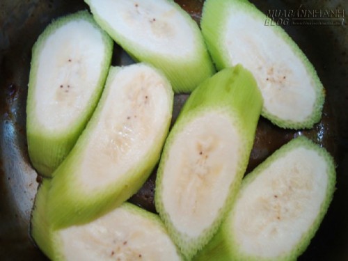 - Chuối xanh gọt vỏ ngoài, rồi cho vào máy xay nhuyễn.