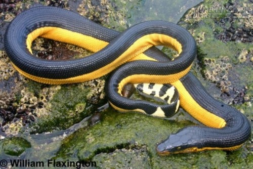 Là hậu duệ của rắn hổ mang châu Á và rắn hổ Úc, rắn biển bụng vàng là một trong những loài rắn đẹp nhất nhưng cũng chứa nọc độc nguy hiểm nhất thế giới.