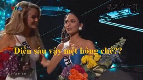 Một trong những "câu nói bất hủ" trào lưu của cộng đồng mạng cũng được đem vào ảnh chế Hoa hậu hoàn vũ