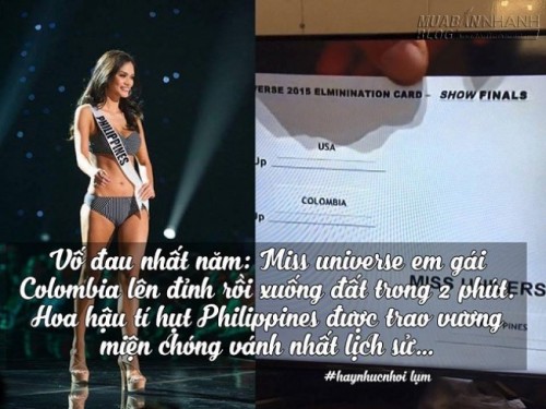 Sau màn trao nhầm vươn miện Hoa hậu hoàn vũ, sự nhầm lẫn tai hại của MC đã đã trở thành trò cười cho cả thế giới. Miss Colombia đã vỡ òa trong khoảnh khắc được xướng tên cho ngôi vị cao nhất của HHHV 2015. Tuy nhiên, kết quả cuối cùng lại thuộc về Miss Philippines. Cũng từ đây, hàng loạt ảnh chế được nhiều bạn trẻ biến tấu lan truyền trên cộng đồng mạng.