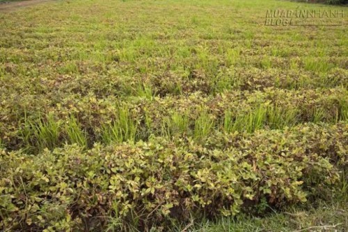 Đi qua một đoạn nhà thưa, đồng trống, anh bạn phát hiện những bụi cây được nhổ chất cao trên cánh đồng. Đây đó những người phụ nữ đang ngồi cắm cúi bên những chiếc dù và chòi che nắng được làm bằng những bụi cây vừa nhổ trông thật lạ mắt.