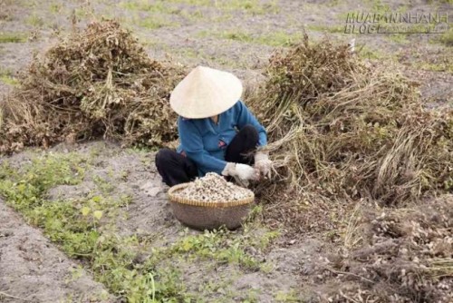 Anh nói mùa này đã hơi trễ vì các ruộng đậu đã nhổ gần hết. Nắng quá nên đậu cũng hết xanh. Sớm một chút, khoảng tháng 2, tháng 3, đi qua vùng này đâu đâu cũng thấy người dân nhổ, lựa, nhặt đậu phộng trên những cánh đồng trải luống…