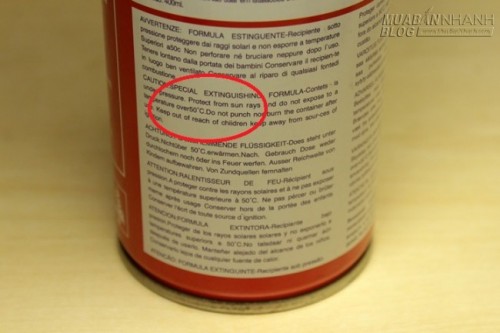 Cảnh báo của nhà sản xuất về nhiệt độ trên bình chữa cháy