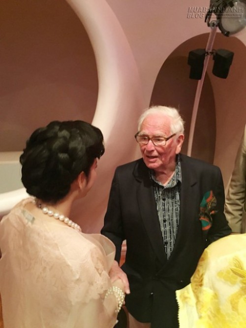 Tại show diễn, diễn viên 'Mùa hè lạnh' có cơ hội làm quen với nhà thiết kế lừng danh Pierre Cardin. Ông là nhân vật mà Lý Nhã Kỳ ngưỡng mộ từ lâu vì tài năng sáng tạo.