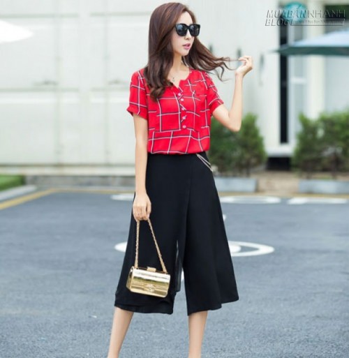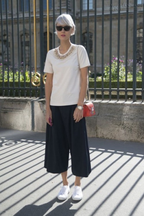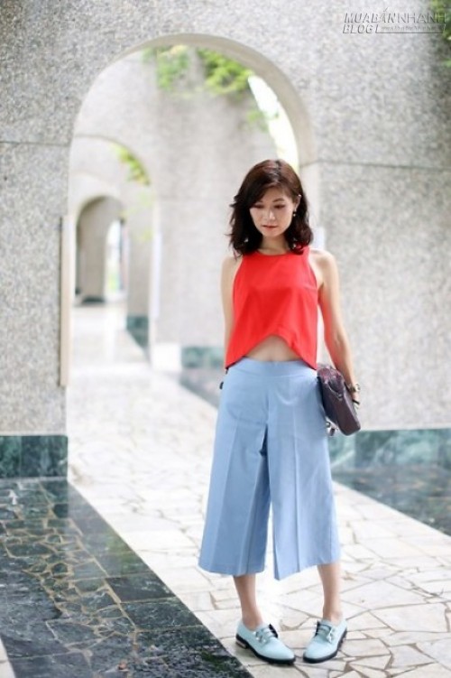 Lựa chọn những kiểu áo tượng như như chiếc quần ống rộng, tạo cảm giác như bạn đang mặc một bộ jumpuit. Đây cũng là phong cách khá thú vị của culottes.