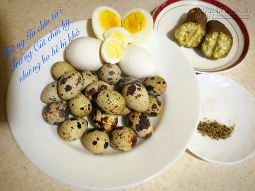 “Mình luộc 2 loại trứng cút và trứng gà có kích cỡ to, nhỏ khác nhau mà độ chín gần như nhau còn trứng lộn thì mình chưa thử”, chị Huệ cho biết.