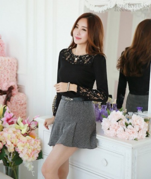 Áo dài tay đa số là áo sơ mi, hoặc áo thun dài tay đều được, bạn chọn kết hợp cùng chân váy xòe tự nhiên và khéo léo phối màu sắc cho thật hài hòa.Trong đó, chân váy xòe bạn có thể chọn xòe tự nhiên, xòe bồng bềnh, xếp ly hoặc xòe kiểu đuôi cá đều được nhé!