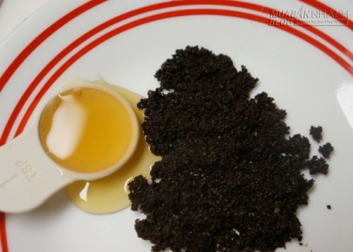Bã cà phê cho vào chén, sau đó, nhanh chóng cho 1 muỗng canh dầu oliu, trộn thật đều. Cách thực hiện rất đơn giản, hỗn hợp thu được, thoa trực tiếp lên vùng da bạn muốn đốt mỡ thừa.