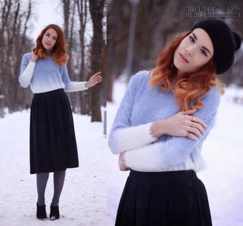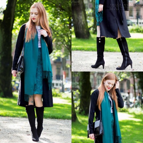 Nữ blogger 24 tuổi Sonja V lại lựa chọn hai gam màu xanh và đen làm điểm nhấn chủ đạo.