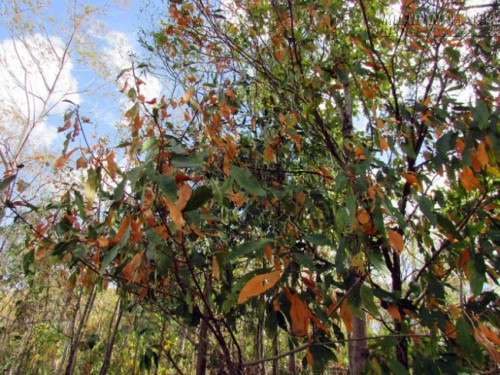 Lá rừng ven hồ Cà Giây đang đổi màu thay sắc – Ảnh: Nguyễn Thiên Đăng