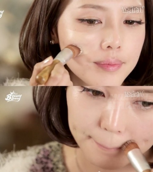 Bạn nên dùng chổi đặc biệt để thoa kem nền lên mặt không đánh bằng ngón tay. Tán đều trên da theo hướng từ trong ra ngoài, lưu ý lớp nền đừng quá dày và chồng chéo lên nhau sẽ khiến da mặt bạn trông bự phấn. Sau đó, dùng tăm bông di lại những điểm bóng dầu.