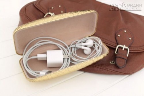 4. Dùng hộp đựng kính để chứa dây sạc điện thoại hoặc tai nghe tránh tình trạng bị rối hoặc thất lạc.