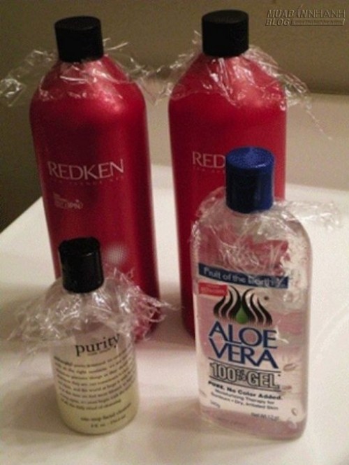 5. Với những chai lọ đựng chất lỏng, bao bọc bằng nilon trước khi đóng nắp sẽ ngăn chặn sự cố rò rỉ.