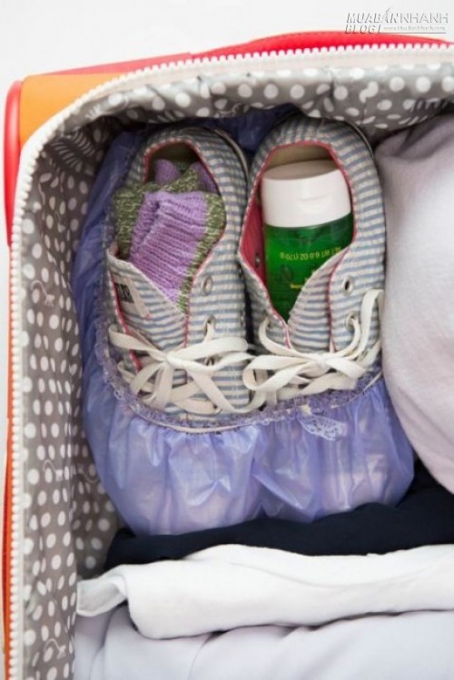8. Mũ tắm bằng nilon còn có thể tận dụng để gói những vật dụng bẩn hoặc đã dùng dở để tránh dây bẩn đến những đồ đạc khác trong vali.