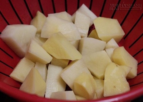 | Cho vài giọt nước cốt chanh để giữ khoai tây không bị thâm trong quá trình chế biến. Ảnh: N.S. |