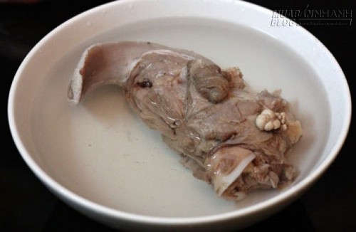 Ngâm lưỡi heo vào trong nước sôi để dễ cạo bỏ lớp màng
