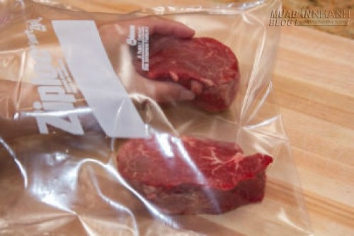 Cho miếng thịt vào trong túi ziplock.