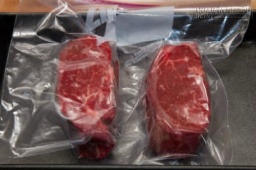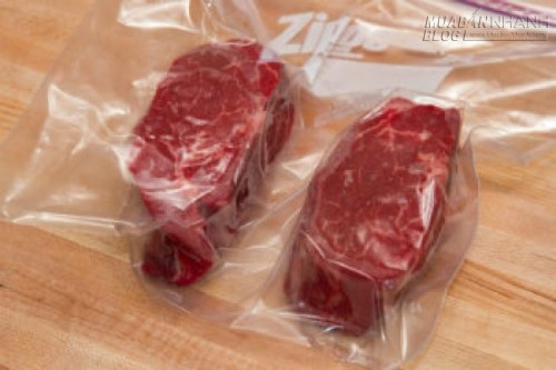 Loại hết khí trong túi đựng thịt bò rồi miết chặt miệng túi.