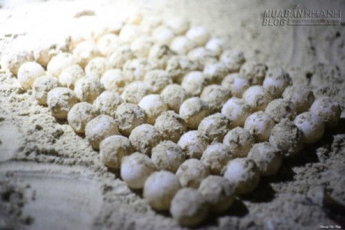 Trứng rùa sau khi được các nhân viên bảo tồn lấy từ tổ lên. Ảnh: Phương Thu Thủy. |