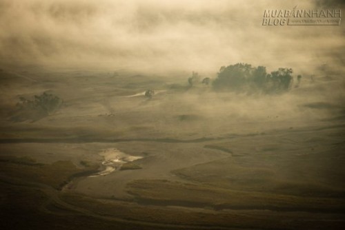 Mặt trời lên thì sương cũng tan dần, hình ảnh những ngọn núi dần hé lộ.