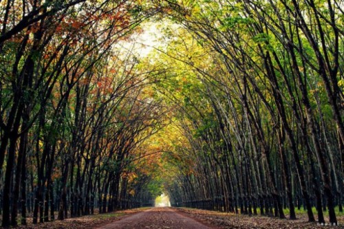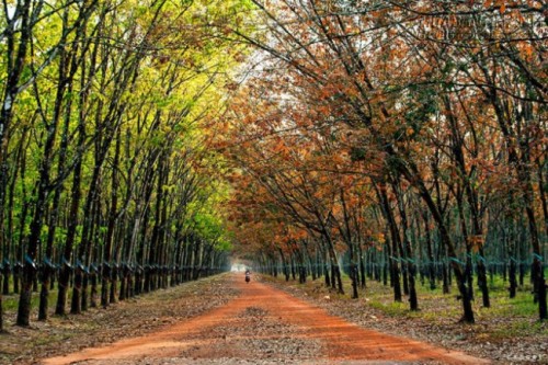 Còn nếu như muốn đi xa hơn, để có những bức ảnh lạ và đẹp hơn. Hãy tìm đến những cánh rừng cao su ở khu vực Tây Nguyên. Nơi có bầu trời xanh cao xen lẫn với với màu nâu đỏ đất, của cây, màu đỏ vàng của lá, và cả làn hơn giá lạnh se se…