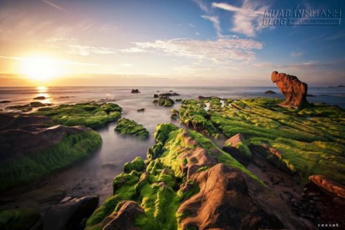 Bình minh và rêu đá trên bãi biển Cổ Thạch – Ảnh: Cao Cat